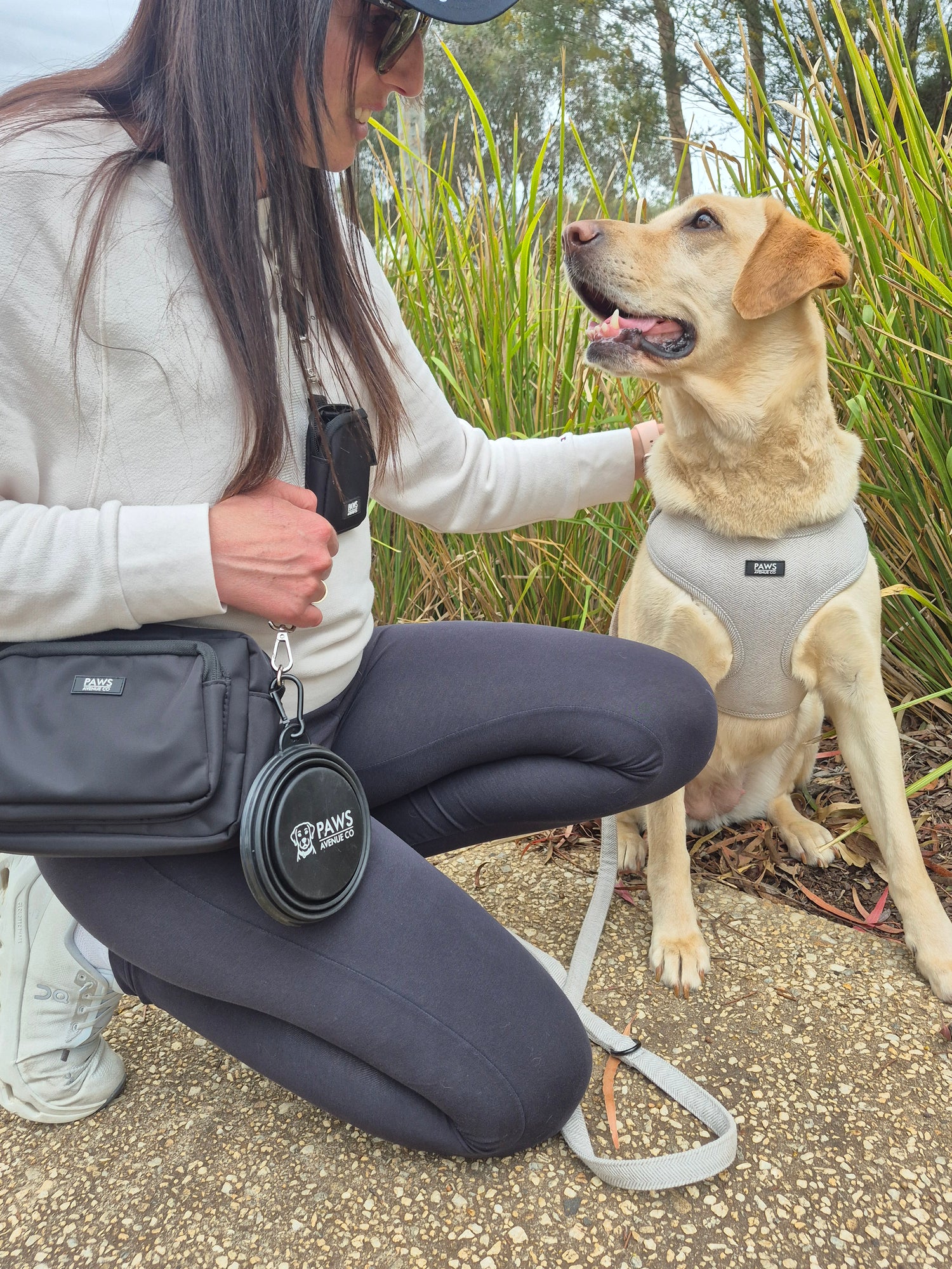 Our versatile bag is thoughtfully designed to carry all your essentials, including your phone, keys, poop bags, treats, collapsible water bowl and even small personal items like wallets and a water bottle.