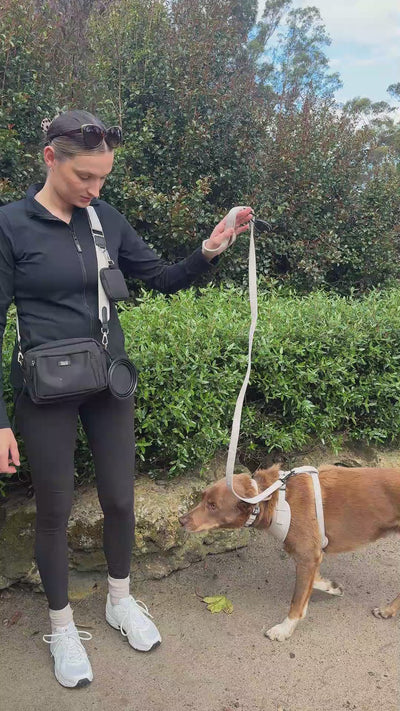 You can also attach the Poop Bag Clip and Collapsible Dog Bowl to the Dog Walking Bag.